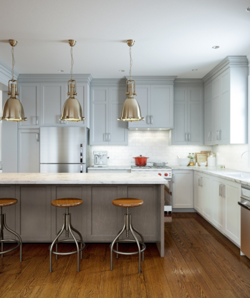 - Choice of finished kitchen cabinets with a dishwasher opening.